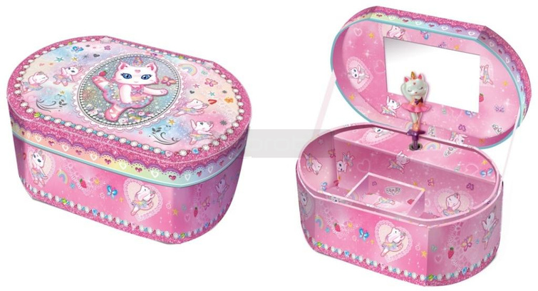 Pozytywka gra klasyczną melodię. Po otwarciu figurka będzie się kręcić. Gdy melodia przestanie grać pozytywkę wystarczy nakręcić. Działa dzięki specjalnemu mechanizmowi, nie wymaga baterii. Zawiera lusterko oraz miejsce na schowanie drobiazgów. Wiek: 6+