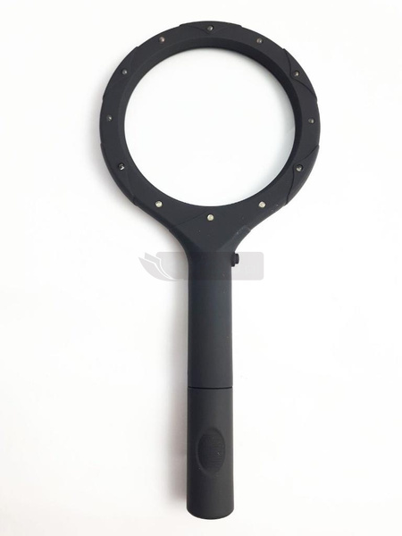 Lupa LED dla Dziadka. Średnica szkła: 9,0 cm. 12 diod LED. Zasilanie bateryjnie: 2 x AA (nie dołączone do zestawu).