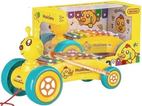 Odkryj świat dźwięków z uroczą gąsienicą do ciągnięcia "Little Musician"! Ta kolorowa, żółta zabawka łączy w sobie funkcję cymbałków z możliwością ciągnięcia, zapewniając godziny kreatywnej zabawy. Wykonana z bezpiecznych materiałów, została zaprojektowana z myślą o dzieciach powyżej 3 roku życia. Gąsienica posiada wbudowane cymbałki o różnych barwach, które pomagają w nauce rozpoznawania dźwięków i kolorów. Dołączona pałeczka ułatwia tworzenie pierwszych melodii. Solidne kółka i wygodny sznurek do ciągnięcia sprawiają, że zabawka towarzyszy dziecku w jego pierwszych krokach i podróżach po domu, rozwijając jednocześnie koordynację ruchową i zdolności motoryczne. Opakowanie z wizerunkiem wesołego kurczaka podkreśla radosny charakter zabawki. Idealna na prezent, który wspiera rozwój i zachęca do muzycznych eksperywnentów.