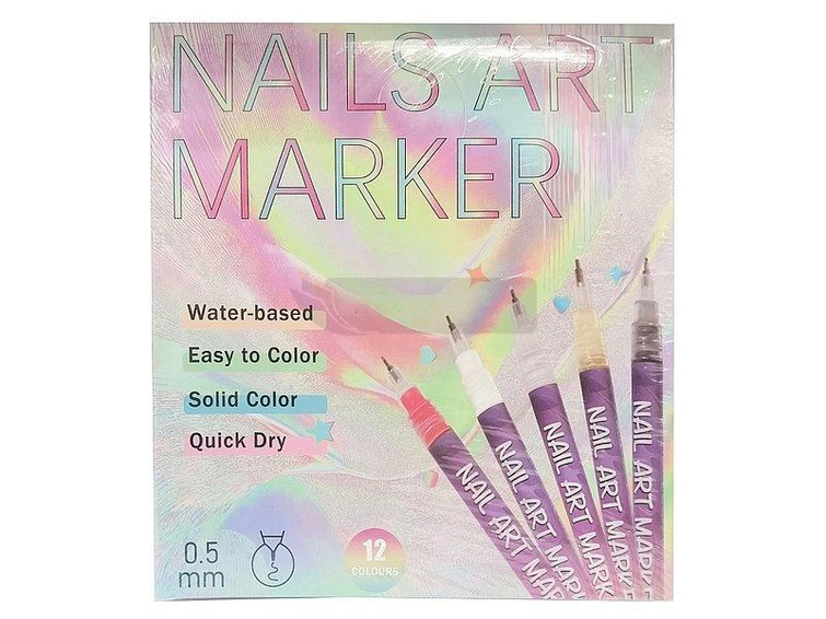 zestaw 12 flamastrów do malowania paznokci, zmywalne wodą, PVC