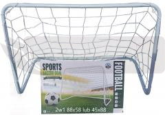 Metalowa, wolnostojąca bramka piłkarska w kolorze białym. W zestawie siatka do bramki. Po złożeniu bramka o wymiarach 88x58x43 [cm]. Doskonała i solidnie wykonana zabawka ogrodowa dla najmłodszych fanów piłki nożnej.