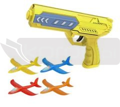Solidnie wykonany samolot styropianowy z pistoletem wyrzutnią. Rewelacyjny do zabawy na świeżym powietrzu. Nie wymaga baterii, napęd mechaniczny sprężynowy.