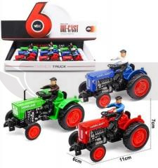 Wysokiej jakości model traktora z kierowcą. Model wykonany z bezpiecznych materiałów, zawiera elementy metalowe. Zabawka posiada napęd wsteczny (nakręcany poprzez cofnięcie). Cena za 1szt.