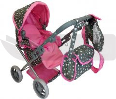 Wózek posiada: ładne metalowe rurki, szybkie składanie, blokadę przed samoczynnym złożeniem się wózka, materiał solidny bawełniany z możliwością zdjęcia do prania, duży kosz na zakupy, wyjmowane nosidło, pościel, regulowaną wysokość rączki, torbę, pasy w wersji spacerowej.