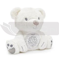 Pluszowy miś z projektorem jest wspaniałym pomocnikiem w usypianiu dzieci. Jego konstrukcja jest miękka i wygodna, idealna dla małych dzieci. Śpiący miś jest wykonany z miękkiego i przyjemnego pluszowego materiału. Pluszak posiada urządzenie projekcyjne, które wyświetla piękne kolorowe gwiazdy i księżyc na ścianie lub suficie. Kołysanka ma również funkcję białego szumu, która wytwarza spokojny szum, podobny do szumu fal, deszczu lub cichego wiatru, tworząc relaksującą ścieżkę dźwiękową, która usypia dziecko. Oprócz białego szumu może odtwarzać spokojną i łagodną muzykę, którą można opcjonalnie włączyć lub wyłączyć zgodnie z preferencjami. Baterie są wkładane do pluszaka poprzez usunięcie brzuszka.