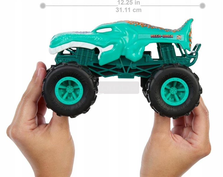 Zdobywaj każdy teren i dominuj nad konkurencją ze zdalnie sterowanym pojazdem Hot Wheels® Monster Trucks® Mega-Wrex™! Ten zdalnie sterowany samochód zabawka Mega-Wrex™ z oponami Terrain Action stawi czoła każdej powierzchni. Totalna dominacja na podłodze i w terenie! Postaw zabawkę na tylnych kołach, aby jechać tylko na dwóch oponach! Samochód działa na częstotliwości 2,4 GHz, co pozwala wyeliminować zakłócenia w działaniu innych zdalnie sterowanych pojazdów – więc możesz postawić na rywalizację! Odkrywaj obszar w obrębie ok. 30 metrów z maksymalną prędkością do ok. 8 km/h. Kontroler zdalnego sterowania umożliwia kierowanie własnymi przygodami pełnymi kraks, stłuczek i terytoriów do odkrycia. Ustaw zabawkę Mega-Wrex™ na tylnych kołach, aby robić sztuczki. To świetny prezent dla dzieci i fanów zdalnie sterowanych pojazdów, którzy uwielbiają napędzać własne opowieści. Wymagane baterie 3 AA (LR6) Alkaline