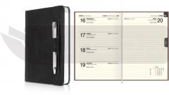 Perforowane narożniki umożliwiają szybkie odnalezienie bieżącej daty. Wewnątrz znajdziesz również tasiemkę do zaznaczania stron oraz strony dodatkowe na notatki, telefony kierunkowe, skorowidz alfabetyczny, imieniny i święta.