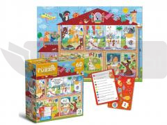 Po złożeniu puzzla przed maluchem ukaże się obrazek przytulnego domu, w którym mieszkają uroczy pupile: kotki, pieski, króliczki i inne zwierzaki, wesoło spędzające czas.