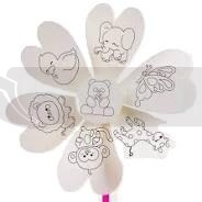 papierowy wiatraczek z szablonem do malowania, 6 końcówek, centralne koło, patyczek, całkowita długość złożonego wiatraczka 38,5 cm