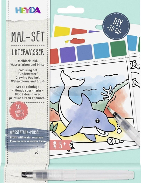 Malowanka wodna do kolorowania dołączonymi kolorami. W zestawie pędzelek z pojemniczkiem na wodę. Format malowanki 15 x 18 cm. 10 obrazków.