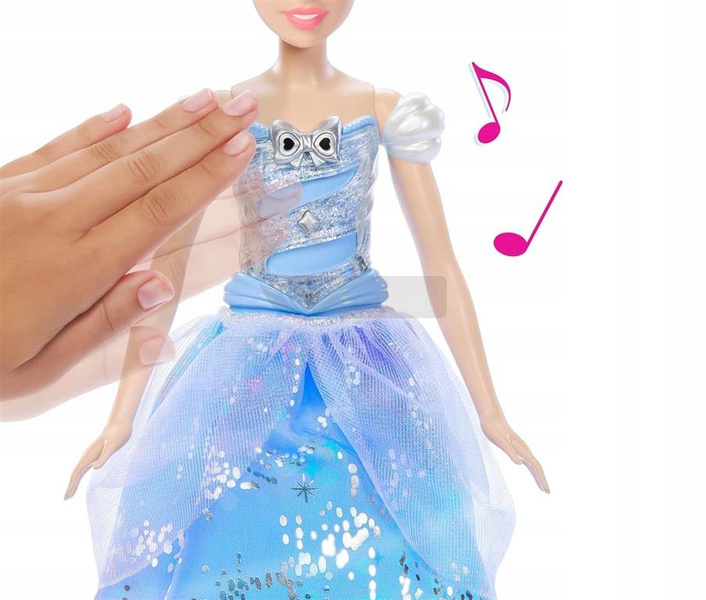 DISNEY KSIĘŻNICZKI LALKA KOPCIUSZEK Magiczna suknia balowa światła, dźwięk JBF94