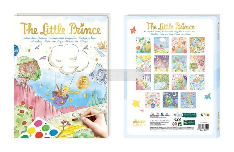 Dzięki tej cudownej książce z malowankami możesz stworzyć piękne obrazy, z których każdy będzie przywoływał scenę z Małego Księcia. Dla dzieci powyżej 3-go roku życia. Zawiera: 15 stron z ilustracjami, pędzel, 8 akwarelowych farbek.