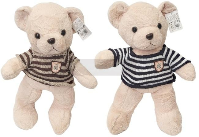 Poznaj naszego uroczego pluszowego misia, który z pewnością skradnie serce każdemu! Ten beżowy miś, ubrany w stylowy sweterek w biało-granatowe paski, prezentuje się niezwykle urokliwie. Na jego sweterku znajduje się również mała, ozdobna naszywka z herbem, dodająca mu elegancji. Miś został wykonany z wysokiej jakości, niezwykle miękkiego i przyjemnego w dotyku pluszu, co sprawia, że jest idealny do przytulania i tulenia. Jego klasyczny wygląd i dbałość o detale sprawiają, że będzie wspaniałym prezentem dla dzieci w każdym wieku, jak i dla dorosłych kolekcjonerów pluszaków. Doskonały do snu, zabawy i jako element dekoracyjny w pokoju.