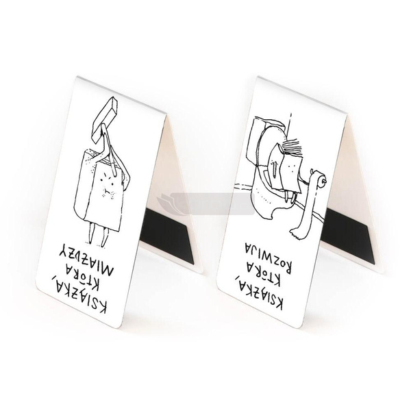 Książka, która miażdży. Książka, która rozwija. Z humorem, z magnesem i z przesłaniem - idealna zakładka dla tych, którzy wiedzą, że dobra lektura potrafi wszystko! Zaokrąglone rogi, papier kreda 350 g, folia zabezpieczająca błysk, folia magnetyczna na kawałku zakładki