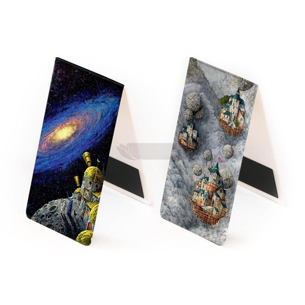 Dwa wyjątkowe obrazy malarza Rocha Urbaniaka! Komandor Lem i Witajcie w Chmurogórzu. Idealne dla kochających science fiction i fantasy! Zaokrąglone rogi, papier kreda 350 g, folia zabezpieczająca błysk, folia magnetyczna na kawałku zakładki