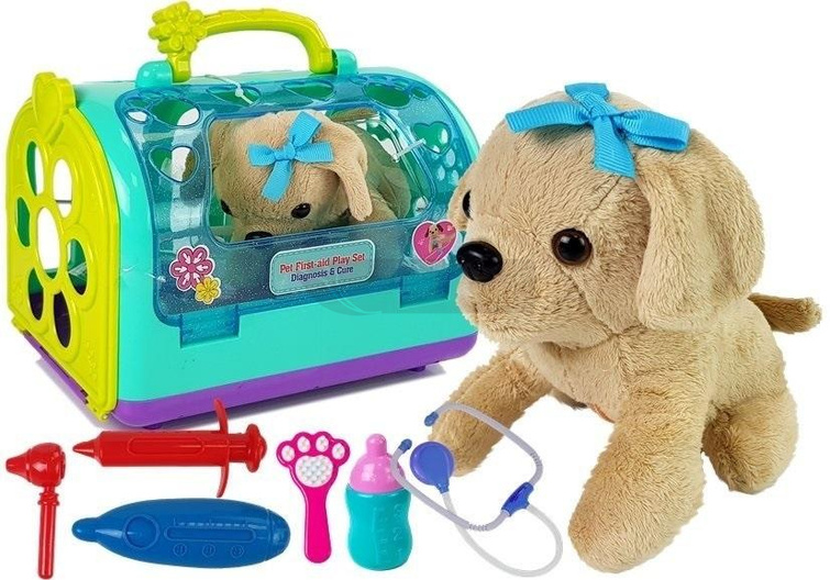 Są dzieci, które już od najmłodszych lat wiedzą, co chcą robić. Jeśli Twoje dziecko leczy wszystkie zabawki i twierdzi, że chce zostać weterynarzem, wyposaż je w nasz zestaw. Jego bogate, wieloczęściowe wyposażenie i estetycznie wykonane przyrządy medyczne pobudzą wyobraźnię dziecka i pozwolą mu połączyć fantastyczną zabawę z nauką i rozwojem własnych pasji. Starannie zrobione imitacje prawdziwych narzędzi medycznych ucieszą dziecko. Wplatanie takich zestawów do zabaw jest również świetną metodą pozwalającą w prosty sposób wytłumaczyć dziecku, że weterynarze ratują życie zwierząt. Ogromną zaletą zestawu jest jego uniwersalizm. Dołączony do zestawu piesek wydaję dźwięki po naciśnięciu brzuszka.