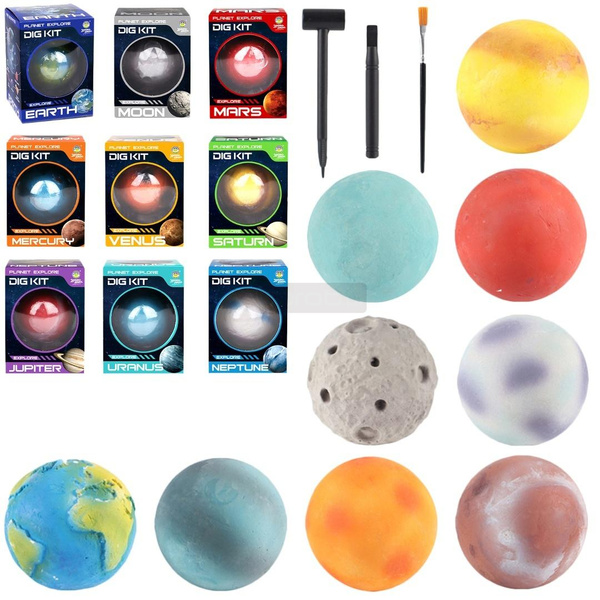 Zestaw do Odkrywania Ukrytej Planety "Planet Explore Dig Kit" - Odkop Swój Własny Układ Słoneczny! Przedstawiamy niezwykły zestaw "Planet Explore Dig Kit", który przeniesie Twoje dziecko w fascynującą podróż kosmiczną i archeologiczną zarazem! Każde opakowanie to mini-blok, w którym ukryta jest jedna z planet lub księżyc Układu Słonecznego. To idealna zabawka dla małych astronomów i odkrywców, która zapewni wiele godzin kreatywnej zabawy i edukacji. Główne cechy produktu: Zestaw do odkopywania planet: Każdy zestaw zawiera blok gipsowy (lub podobnej masy), w którym zatopiona jest figurka planety lub księżyca. Proces odkopywania jest niczym prawdziwe wykopaliska! Kompletny Układ Słoneczny: Dostępne są zestawy z różnymi ciałami niebieskimi, takimi jak Ziemia, Księżyc, Mars, Merkury, Wenus, Saturn, Jowisz, Uran i Neptun. Pozwala to na zebranie całej kolekcji i zbudowanie własnego modelu Układu Słonecznego. Narzędzia do wykopalisk: Do każdego zestawu dołączone są plastikowe narzędzia - młotek i dłuto/skrobak oraz pędzelek. Ułatwiają one precyzyjne wydobycie planety z bloku. Realistyczne figurki planet: Odkopane figurki planet są pomalowane w sposób imitujący ich rzeczywiste kolory i powierzchnie, co sprawia, że są nie tylko zabawką, ale także modelem edukacyjnym. Rozwija cierpliwość i precyzję: Proces odkopywania wymaga skupienia, cierpliwości i precyzyjnych ruchów, co doskonali zdolności manualne i koordynację ręka-oko. Wspiera edukację STEM: Zestaw w ciekawy sposób wprowadza dzieci w zagadnienia astronomii i geologii, pobudzając ich ciekawość naukową i chęć poznawania świata. Idealny na prezent: Zestaw jest estetycznie zapakowany w kartonowe pudełko z grafiką przedstawiającą daną planetę, co sprawia, że jest gotowym i atrakcyjnym prezentem dla każdego małego odkrywcy. Zalecany wiek: 6+ (zgodnie z oznaczeniem na opakowaniu). Wielkość opakowania: 13x10x10 cm Daj swojemu dziecku szansę na ekscytujące odkrycie i posiadanie własnej kolekcji planet Układu Słonecznego z zestawem "Planet Explore Dig Kit"!
