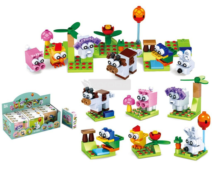 Klocki zwierzątka farmerskie. W zastawie minimum 25 elementów (w zależności od wzoru klocków)