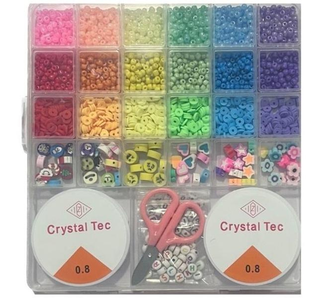 Odkryj nieograniczone możliwości kreatywnego tworzenia biżuterii z naszym wszechstronnym zestawem koralików! Ten obszerny zestaw zawiera bogactwo koralików w pełnej gamie kolorystycznej, od klasycznych okrągłych, po modne koraliki heishi i urocze zawieszki o różnych kształtach. W zestawie znajdziesz również koraliki z literkami, które pozwolą na personalizację bransoletek i naszyjników. Dołączone akcesoria, takie jak żyłka Crystal Tec o grubości 0.8 mm oraz nożyczki, sprawiają, że zestaw jest gotowy do użycia od razu po otwarciu. Idealny dla każdego, kto chce rozwijać swoje pasje artystyczne i tworzyć unikalne, ręcznie robione ozdoby. Doskonały zarówno dla dzieci, jak i dorosłych.