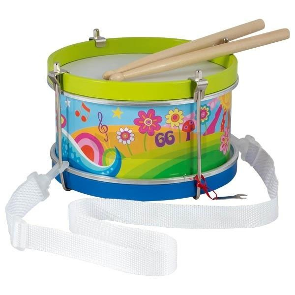 Drewniany bębenek ozdobiony motywem kwiecistej łąki. Idealny do nauki podstaw rytmiki i ćwiczeń muzycznych, rozwijając słuch oraz wrażliwość artystyczną. Zachęca dzieci do tworzenia własnych rytmów.