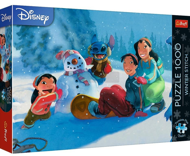Puzzle XMAS Stitch: nowość 2025 , składające się z 1000 elementów,Po ich ułożeniu powstanie obrazek w rozmiarach 683x480 mm.