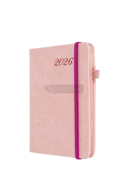 blok: 110x150 mm, 168 stron, papier 64g/m2 kremowy, druk 2 kolory, blok kalendarza szyty nićmi, zaokrąglone rogi, tasiemka