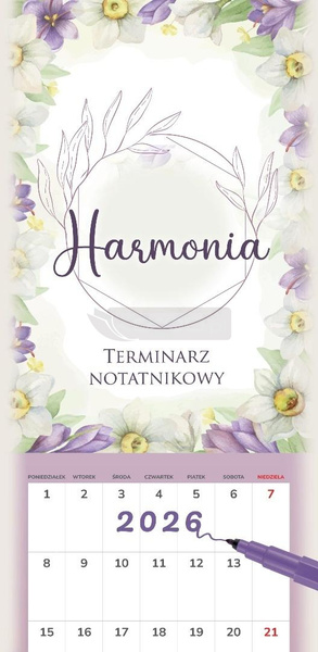 Kalendarz 2026 notatnikowy 46x22cm Harmonia