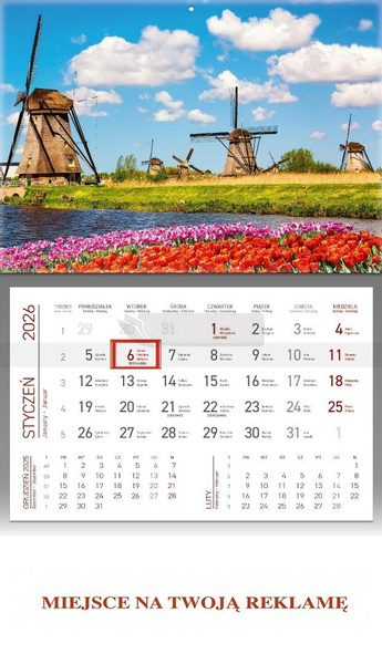 Kalendarz 2026 ścienny jednodzielny Wiatraki