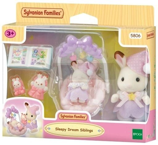 Rodzeństwo z rodziny królików z czekoladowymi uszami Sylvanian Families jest już gotowe do snu. Zestaw zawiera Freyę i jej malutką siostrę Florę. Mała Flora zamknęła już oczy i śni jakiś słodki sen. Figurki mają na sobie śliczne fioletowe piżamy i czepki nocne. W zestawie znajdują się dwie przytulanki do snu oraz książka z baśniami, a także łóżeczko dziecięce z pałąkiem w kształcie kokardy i zabawkami w kształcie gwiazd i księżyca. Zabawki Sylvanian Families rozwijają wyobraźnię i zachęcają dzieci do zabawy w odgrywanie ról. Zabawa z figurkami Sylvanian Families rozwija kreatywność i uczy emocji poprzez tworzenie i opowiadanie historii na podstawie codziennych doświadczeń i obserwacji świata. Zabawki Sylvanian Families tworzy japońska firma Epoch od 1985 roku. Wyróżnia je najwyższa jakość oraz wyjątkowa dbałość o szczegóły. Figurki Sylvanian Families mają ruchome główki, rączki i nóżki. Polecamy od 3 roku życia.
