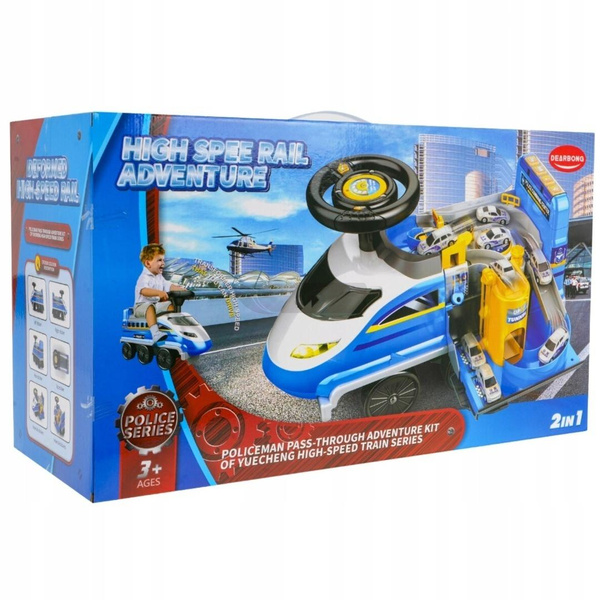 Jeździk to doskonały sposób na rozwijanie zdolności motorycznych i równowagi malucha. Wykonany z wytrzymałych materiałów, zapewnia bezpieczną zabawę zarówno w domu, jak i na zewnątrz podczas spacerów z rodzicami. Dodatkowym atutem są wysuwane podnóżki po obu bokach. Kierownica jest wyposażona w dwa guziki, dzięki którym kontrolować można efekty specjalne. Pojazd posiada 6 kół, na wzór pociągu, z czego dwa przednie są skrętne. Z tyłu jest chroniony panel z muzyką, opowiadaniami i odgłosami zwierząt (lektor nagrany w języku angielskim). Z przodu są świecące reflektory, a pod imitacją szybki - miejsce na drobiazgi. Kolejne miejsce na bagaż znajduje się pod parkingiem. Parking na samochodziki znajduje się pod siedzeniem jeździka i ma ruchome, ręcznie sterowane, elementy - winda, szlaban, podnośnik i kółko obrotowe. Do zestawu dołączone są małe autka (ok. 7 x 2,5 x 3cm), które idealnie pasują do parkingu.