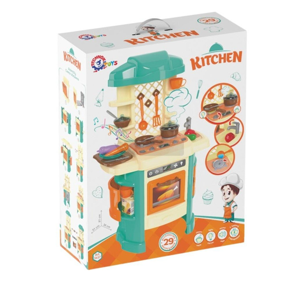Realistyczne efekty: zestaw posiada efekty dźwiękowe, świetlne oraz parowe, które sprawią, że dziecko poczuje się jak w prawdziwej kuchni. Para wodna wydobywająca się spod palnika, dźwięki gotowanego jedzenia czy światła przy palnikach przyciągną uwagę maluchów, zachęcając do długich godzin edukacyjnej zabawy.