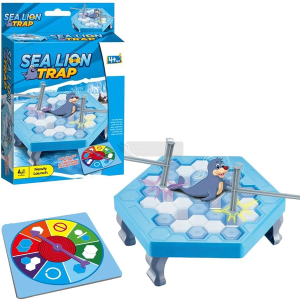 Gra Zręcznościowa "Sea Lion Trap" - Uratuj Lwa Morskiego z Kruchych Lądolodów! Przedstawiamy ekscytującą grę zręcznościową "Sea Lion Trap", która przeniesie Was w mroźne rejony Arktyki! Ta wciągająca zabawa polega na ostrożnym usuwaniu lodowych bloków, starając się nie pozwolić, aby uroczy lew morski wpadł do wody. Idealna dla całej rodziny, rozwija precyzję, strategiczne myślenie i uczy cierpliwości. Cechy produktu: Zasady gry: Gracze po kolei kręcą ruletką, która wskazuje, jaki typ lodowego bloku należy usunąć z planszy. Celem jest ostrożne wybijanie klocków, aby platforma, na której siedzi lew morski, pozostała stabilna. Gracz, który sprawi, że lew morski spadnie, przegrywa! Elementy zestawu: W komplecie znajduje się sześciokątna plansza imitująca lodową taflę, liczne sześciokątne "lodowe" bloki (białe i przezroczyste), urocza figurka lwa morskiego oraz ruletka do losowania ruchów. Dodatkowo, w zestawie są plastikowe młoteczki (niewidoczne na zdjęciu, ale typowe dla tego rodzaju gier), służące do wybijania klocków. Rozwój kluczowych umiejętności: o Precyzja i koordynacja ruchowa: Wymaga dokładnych ruchów, aby nie naruszyć całej konstrukcji. o Logiczne myślenie i strategia: Gracze muszą ocenić, który blok usunąć, aby zminimalizować ryzyko zawalenia. o Cierpliwość i koncentracja: Gra uczy skupienia i przemyślanych działań. o Rozpoznawanie kolorów i kształtów: Ruletka i różnokolorowe pola na niej wspomagają naukę. o Interakcja społeczna: Idealna do zabawy w grupie, uczy zasad fair play i zdrowej rywalizacji. Atrakcyjny design: Plansza w przyjemnym, błękitnym kolorze i sympatyczna figurka lwa morskiego sprawiają, że gra jest wizualnie atrakcyjna dla dzieci. Trwałe materiały: Wykonana z bezpiecznych i wytrzymałych materiałów, gwarantujących długotrwałą zabawę. Wiek: Produkt przeznaczony dla dzieci od 4 roku życia (oznaczenie "4+" widoczne na opakowaniu). Wielkość opakowania: 15x20x5 cm "Sea Lion Trap" to wspaniała propozycja na rodzinne popołudnia, która dostarczy mnóstwo śmiechu, emocji i zdrowej rywalizacji, jednocześnie rozwijając cenne umiejętności! Kto uratuje lwa morskiego, a kto wpadnie w pułapkę? Przekonaj się sam!