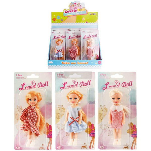 Urocza Laleczka "Lovely Doll" - Idealna do Kreatywnej Zabawy! Opis produktu: Przedstawiamy śliczne laleczki "Lovely Doll", które zachwycą każdą małą miłośniczkę mody i zabawy w odgrywanie ról! Te urocze figurki z długimi włosami i stylowymi ubrankami są idealne do tworzenia własnych historii, rozwijania wyobraźni i kreatywności. Cechy, które zachwycą: Uroczy design: Każda laleczka ma miłą twarz, długie włosy (idealne do czesania i stylizowania) oraz jest ubrana w modną sukienkę o różnych wzorach - od klasycznej kratki, przez paski, po delikatne kwiatowe printy. Różnorodność stylów: Laleczki dostępne są w kilku wariantach ubrania i koloru włosów, co pozwala na zebranie kolekcji i tworzenie różnorodnych stylizacji. Wysoka jakość wykonania: Laleczki są solidnie wykonane, co zapewnia trwałość i długie godziny zabawy. Rozwój wyobraźni: Idealne do odgrywania scenek, tworzenia opowieści i rozwijania kreatywności. Pomagają w kształtowaniu umiejętności społecznych poprzez zabawę w role. Kompaktowy rozmiar: Laleczki są poręczne i łatwe do zabrania ze sobą w podróż, do przyjaciół czy do przedszkola. Idealny na prezent: Laleczki są indywidualnie zapakowane w estetyczne blistry, a w przypadku zakupu zestawu - w atrakcyjnym ekspozytorze "Take me home!", co czyni je doskonałym pomysłem na drobny upominek, nagrodę lub uzupełnienie kolekcji. Idealna dla: Małych miłośniczek lalek i mody. Dzieci lubiących kreatywną zabawę w odgrywanie ról. Rozwijania wyobraźni i zdolności narracyjnych. Wymiary (orientacyjne): Laleczki mają wysokość ok. 10-12 cm (w oparciu o proporcje na zdjęciu, zaznaczone "1 Pcs"). Wiek: 3 lata + (jak wskazuje oznaczenie na opakowaniu). Uwaga: Laleczki wysyłane losowo, w zależności od dostępności wzoru (jeśli oferta dotyczy pojedynczych sztuk). Wielkość: 20x10x3 cm