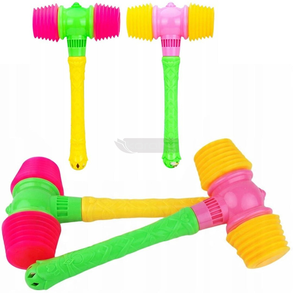 Kolorowy Młotek Zabawkowy z Grzechotką / Piszczałką - Idealny dla Małych Majsterkowiczów! Opis produktu: Przedstawiamy wesoły i bezpieczny młotek zabawkowy, który zapewni mnóstwo frajdy każdemu małemu odkrywcy i majsterkowiczowi! Ten kolorowy gadżet to doskonały sposób na rozwijanie koordynacji ruchowej i zmysłów u najmłodszych. Cechy, które zachwycą: Bezpieczny design: Młotek wykonany jest z lekkiego i trwałego tworzywa sztucznego. Obie główki młotka są miękkie i elastyczne, co minimalizuje ryzyko urazów podczas zabawy i chroni powierzchnie. Żywe kolory: Dostępne w atrakcyjnych, kontrastujących barwach (np. różowy z żółtym, zielony z różowym/żółtym), które przyciągają uwagę dziecka i stymulują wzrok. Funkcja grzechotki/piszczałki: W zależności od wersji, młotek może wydawać zabawne dźwięki (grzechotanie lub piszczenie) przy uderzeniu, co dodatkowo angażuje zmysł słuchu dziecka i wzmacnia interakcję z zabawką. Ergonomiczny uchwyt: Uchwyt młotka jest dopasowany do małych rączek dziecka, co ułatwia chwytanie i operowanie zabawką. Posiada również ozdobne tłoczenia. Rozwój zdolności manualnych: Zabawa młotkiem pomaga w rozwijaniu motoryki dużej, koordynacji ręka-oko oraz precyzji ruchów. Wielostronne zastosowanie: Idealny do zabawy w "naprawianie", naśladowanie dorosłych, a także do stukania w bezpieczne powierzchnie, wydobywając dźwięki. Idealny dla: Maluchów uczących się chwytania i manipulowania przedmiotami. Dzieci lubiących zabawki interaktywne, wydające dźwięki. Małych majsterkowiczów i naśladowców. Materiał: Wysokiej jakości, bezpieczne tworzywo sztuczne. Wiek: Zalecany dla dzieci od 3 lat Wielkość: 41 cm Uwaga: Kolory wysyłane losowo w zależności od dostępności.