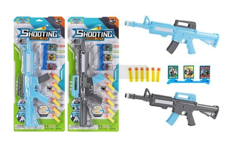 Karabin ze strzałkami i tarczami do trafiania. Sprawdź i ćwicz celność. Produkt zapakowany w kartonową podstawkę z przezroczystym kloszem. Zabawka dla dzieci od 6 lat. Podane wymiary są wymiarami opakowania.
