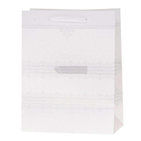 Torebka Lux brokat biała duża 26x32x12cm ROZETTE