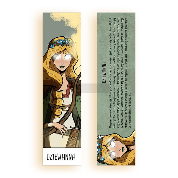 Bogini lasów, łowów i dzikich zwierząt może zawitać w skromne progi każdego mola książkowego. Karton ozdobny perłowy 300g, sztywny, metaliczno-srebrny połysk Wymiary: 50x200mm