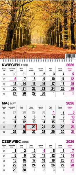 Kalendarz został połączony solidną spiralą z eurozawieszką, która umożliwia łatwe i bezpieczne zawieszenie go na ścianie. Format 280x635 mm gwarantuje czytelność kalendarium oraz komfort użytkowania, a spiralne łączenie zapewnia wygodę podczas przewracania stron i estetyczny wygląd.