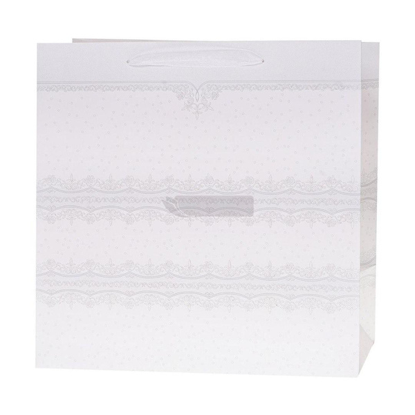 Torebka Lux brokat kwadrat biała 37x37x20cm ROZETTE