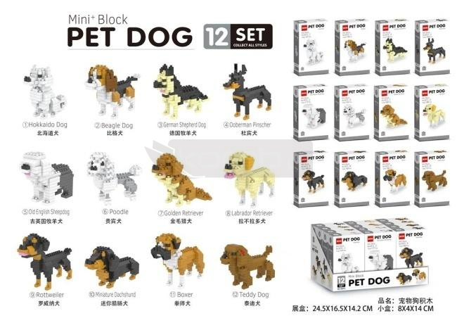 Odkryj świat klocków Mini+ Block PET DOG - doskonałą propozycję dla fanów miniaturowych konstrukcji i uroczych psów! To specjalne opakowanie zbiorcze zawiera aż 12 unikatowych zestawów, z których każdy pozwala zbudować inną, popularną rasę psa. Wśród nich znajdziesz między innymi: Hokkaido Dog, Beagle Dog, German Shepherd Dog, Doberman Pinscher, Old English Sheepdog, Poodle, Golden Retriever, Labrador Retriever, Rottweiler, Miniature Dachshund, Boxer oraz Teddy Dog. Każdy model charakteryzuje się precyzyjnym wykonaniem i dbałością o detale, co sprawia, że gotowe figurki wyglądają niezwykle realistycznie. Zestaw ten to gwarancja wielu godzin kreatywnej rozrywki, rozwijającej zdolności manualne i wyobraźnię. Doskonale sprawdzi się jako prezent dla dzieci i dorosłych kolekcjonerów. Cena podana jest za jedną sztukę klocków z tej kolekcji.