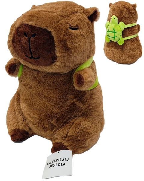 PLUSZOWA KAPIBARA 30 CM Z PLECAKIEM W KSZTAŁCIE ŻÓŁWIA Poznaj uroczą pluszową kapibarę z zielonym plecaczkiem - idealną towarzyszkę do przytulania i zabawy! Ten mięciutki pluszak o ciepłym, brązowym odcieniu z pewnością skradnie serca zarówno dzieci, jak i dorosłych. Kapibara ma urocze, sympatyczne oczka, które nadają jej wyjątkowo przyjazny wygląd. Na jej plecach znajduje się niewielki plecak w kolorach zieleni, który przypomina żółwia - to nie tylko uroczy detal, ale też funkcjonalny dodatek, który nadaje zabawce charakteru i uroku. To świetny pomysł na prezent dla każdego miłośnika kapibar - niezależnie od wieku! Maskotka ma około 30 cm wysokości i została wykonana z miękkich, wysokiej jakości materiałów. Jej przyjemna w dotyku faktura sprawia, że chce się ją przytulać bez końca. Kapibara z plecaczkiem szybko stanie się wiernym towarzyszem codziennych przygód, gotowym do dzielenia się ciepłem, uśmiechem i radością.