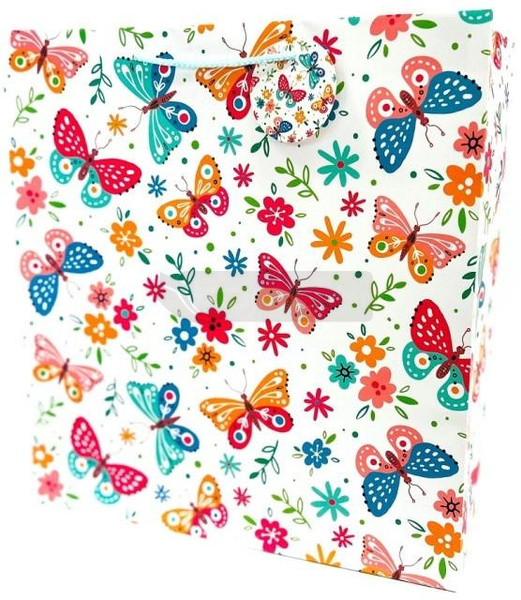 Torebka ozdobna matowa 35x37x12cm Motyle i Kwiaty