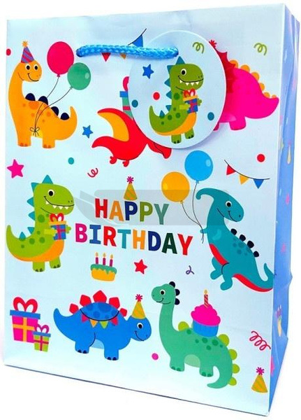Torebka ozdobna matowa 18x23x10cm Dinozaury