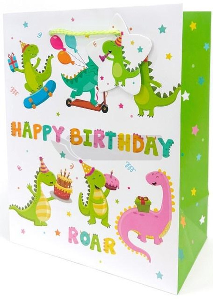 Torebka ozdobna matowa 18x23x10cm Dinozaury