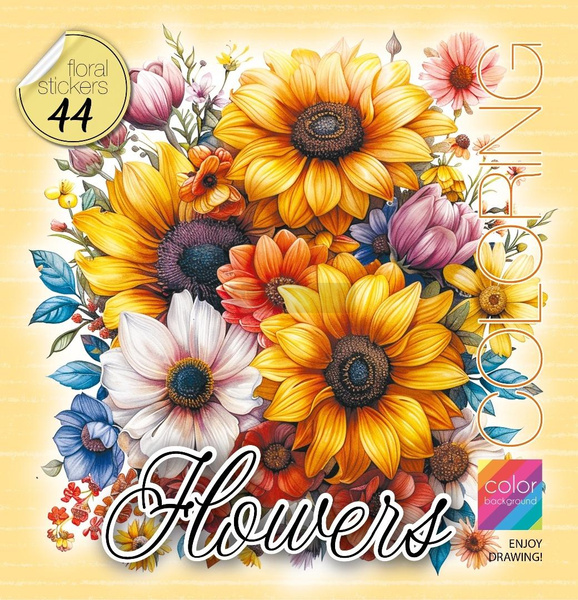 Kolorowanka z naklejkami 200x200 Kwiaty żółte