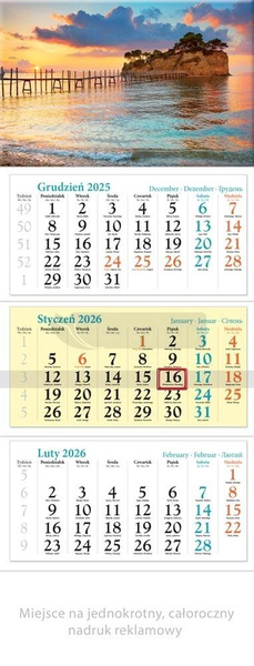 Kalendarz 2026 ścienny trójdzielny Wyspa