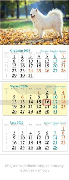 druk: zdjęcie jednostronny barwny + lakier UV błysk; kalendarium jednostronny, barwny;