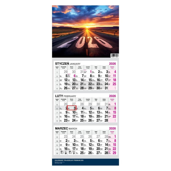 Kalendarz 2026 Trójdzielny Twarda Główka Droga