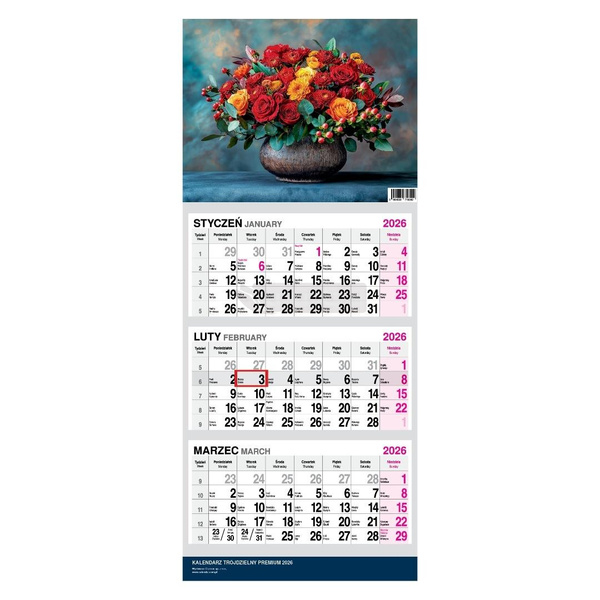 Kalendarz 2026 Trójdzielny Twarda Główka Bukiet