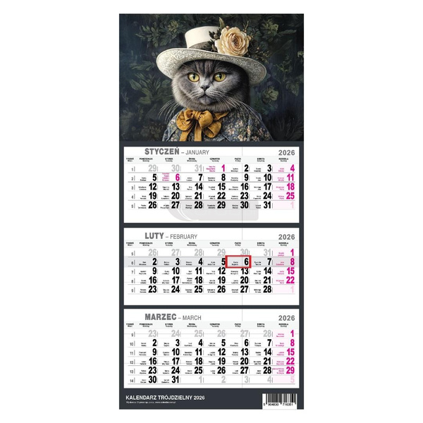 Wyposażony w wytrzymałą dziurkę, kalendarz można łatwo i bezpiecznie zawiesić na ścianie, zapewniając jego widoczność oraz dostępność w każdej chwili. Mimo mniejszego rozmiaru, kalendarz zachowuje czytelność kalendarium i komfort użytkowania.